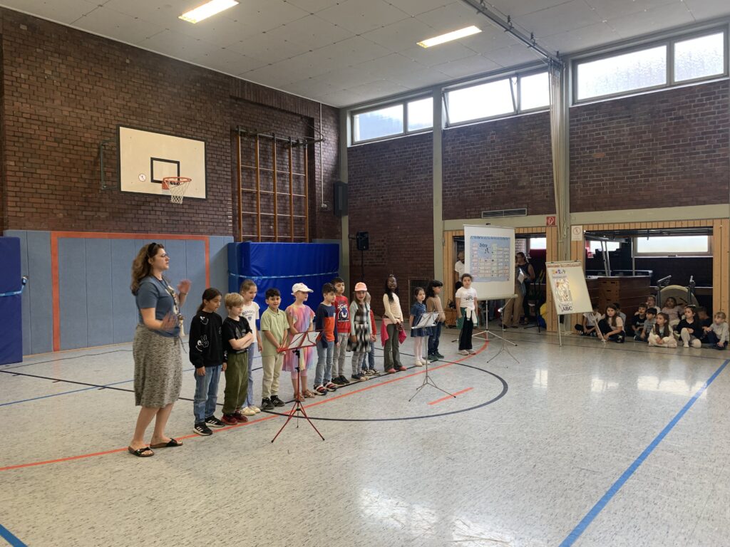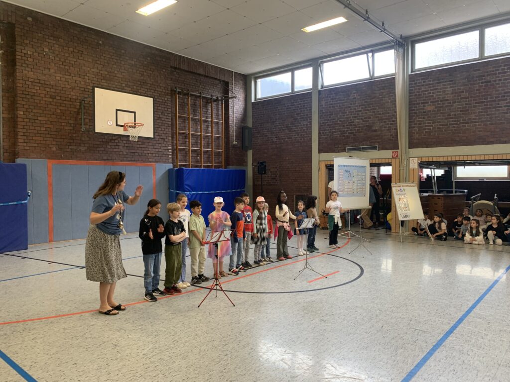 Die Kinder hatten die Gelegenheit, die verschiedenen Holzblasinstrument aus nächster Nähe kennenzulernen und deren Klänge bewusst wahrzunehmen. Besonders bereichernd war das aktive Mitmachen: Gemeinsam mit den Musikern sangen die Schülerinnen und Schüler Lieder und begleiteten diese mit Bodypercussion.