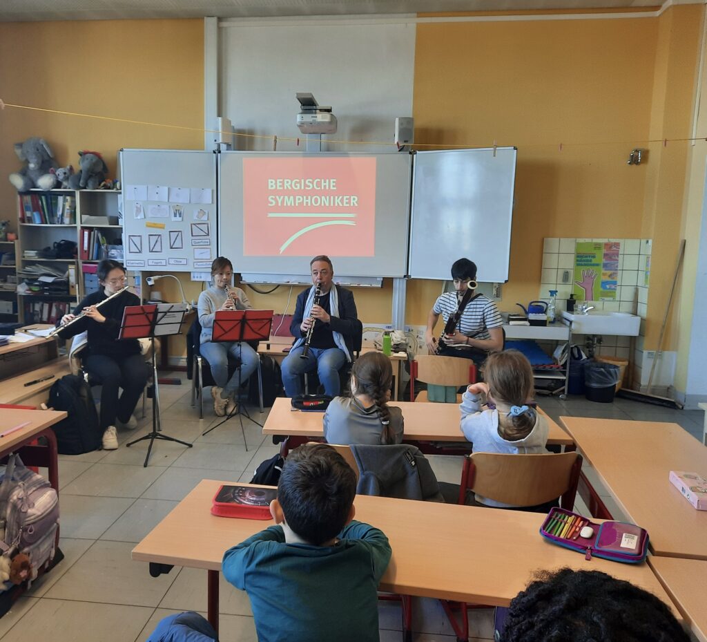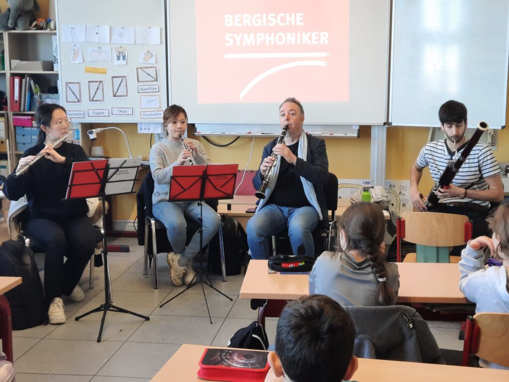 Am 18.03.2026 durften wir die Bergischen Symphoniker an unserer Schule begrüßen. Zu Besuch war die Holzbläsergruppe, die den Schülerinnen und Schülern einen spannenden Einblick in ihre musikalische Arbeit ermöglichte.